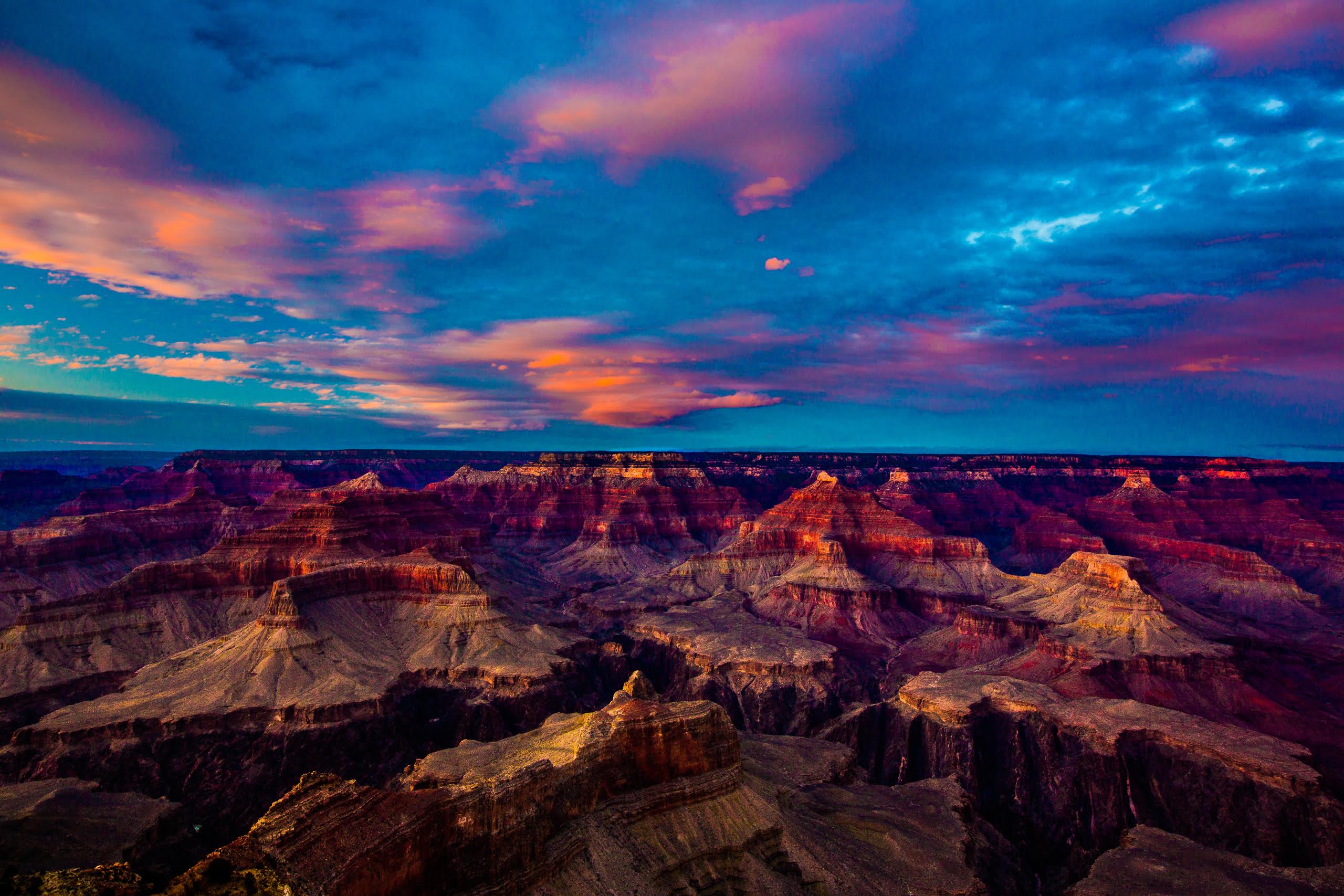 Grand canyon sunset time lapse, day to night, pink & blue colours.